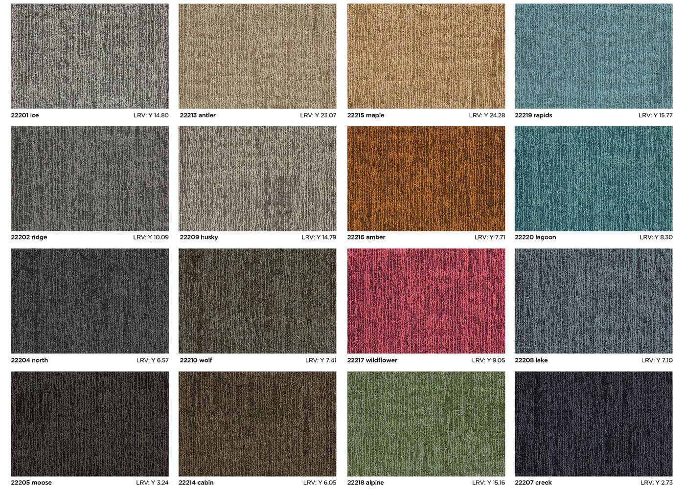Charakterystyczną cechą kolekcji jest biophilic design, czyli kolorystyka inspirowana naturalnymi krajobrazami – od chłodnych odcieni szarości, przez stonowane beże i brązy, aż po bardziej wyraziste barwy inspirowane wodą, roślinnością czy minerałami. Kolekcja obejmuje 16 wariantów kolorystycznych, takich jak Ice, Ridge, Husky, Amber, Wildflower, Lagoon czy Creek.