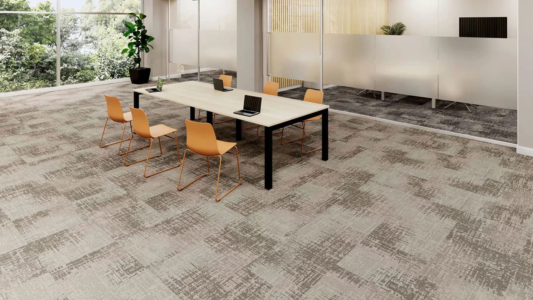 Surface Trace to płytki dywanowe typu multilevel loop, zaprojektowane do przestrzeni komercyjnych o wysokich wymaganiach użytkowych – biur, hoteli, obiektów edukacyjnych, przestrzeni publicznych oraz stref reprezentacyjnych. Kolekcja łączy wyrafinowany wygląd z trwałością klasy heavy commercial.