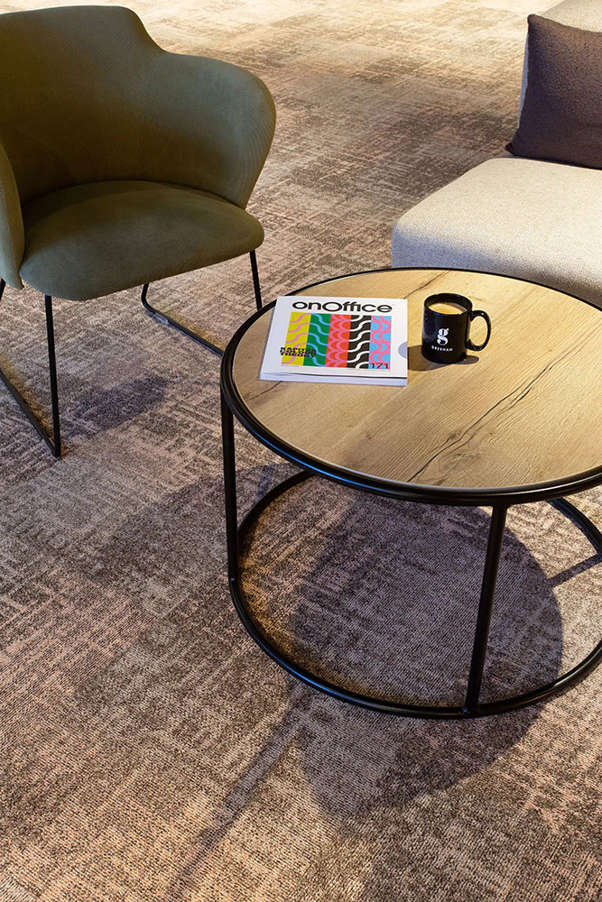 Wyraźna, „mięsista” struktura płytek sprawia, że podłoga zyskuje luksusowy, tekstylny charakter i doskonale komponuje się z nowoczesnym drewnem, betonem architektonicznym czy metalem. Kolekcja umożliwia również tworzenie stref i subtelnych przejść kolorystycznych w dużych przestrzeniach biurowych.