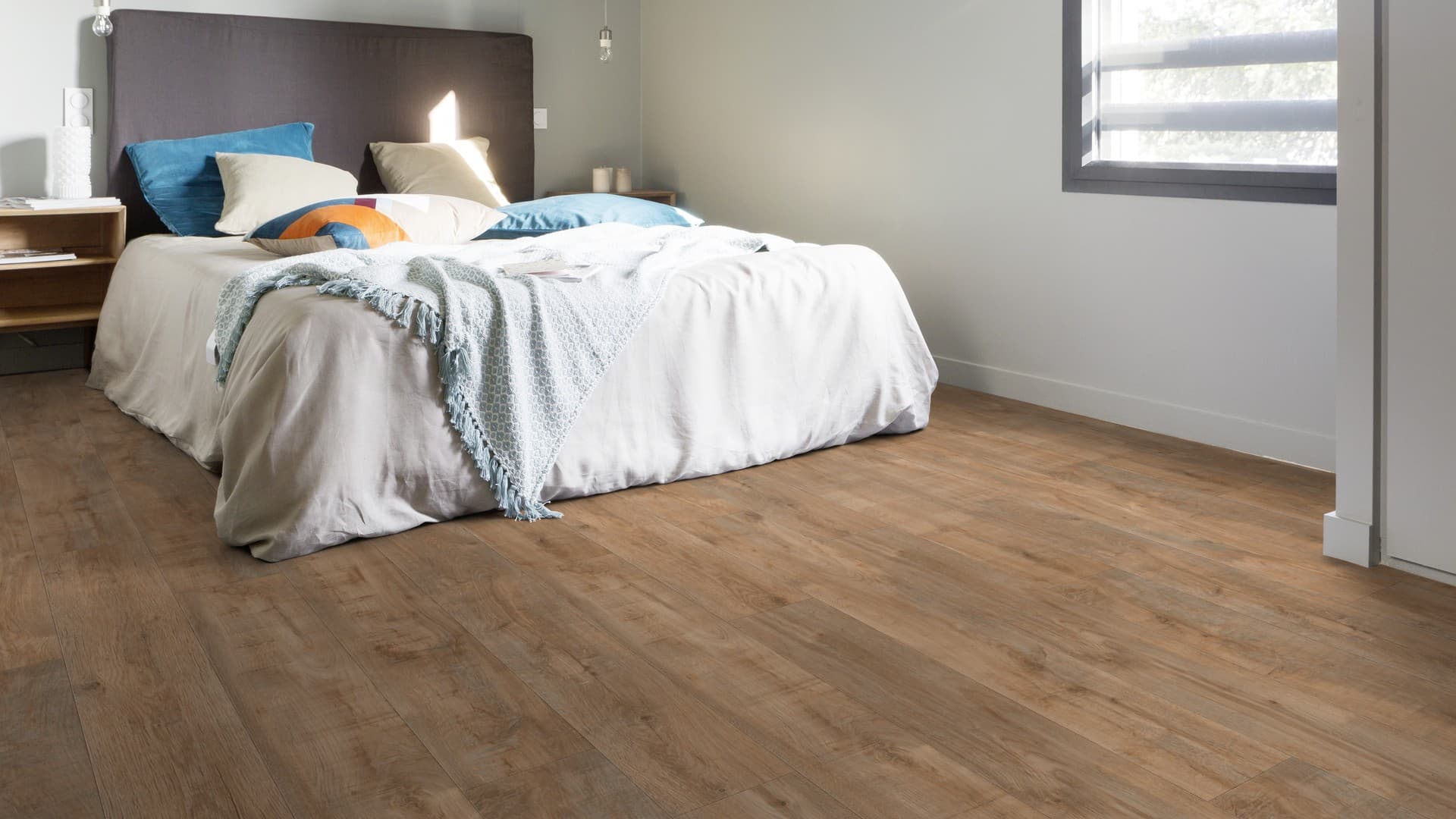 Harmonijna paleta kolorystyczna oraz zaawansowana technologia Smart Design (zróżnicowanie wzoru nawet do 3 m²) sprawiają, że powierzchnia podłogi wygląda naturalnie, bez powtarzalności i sztucznego efektu.