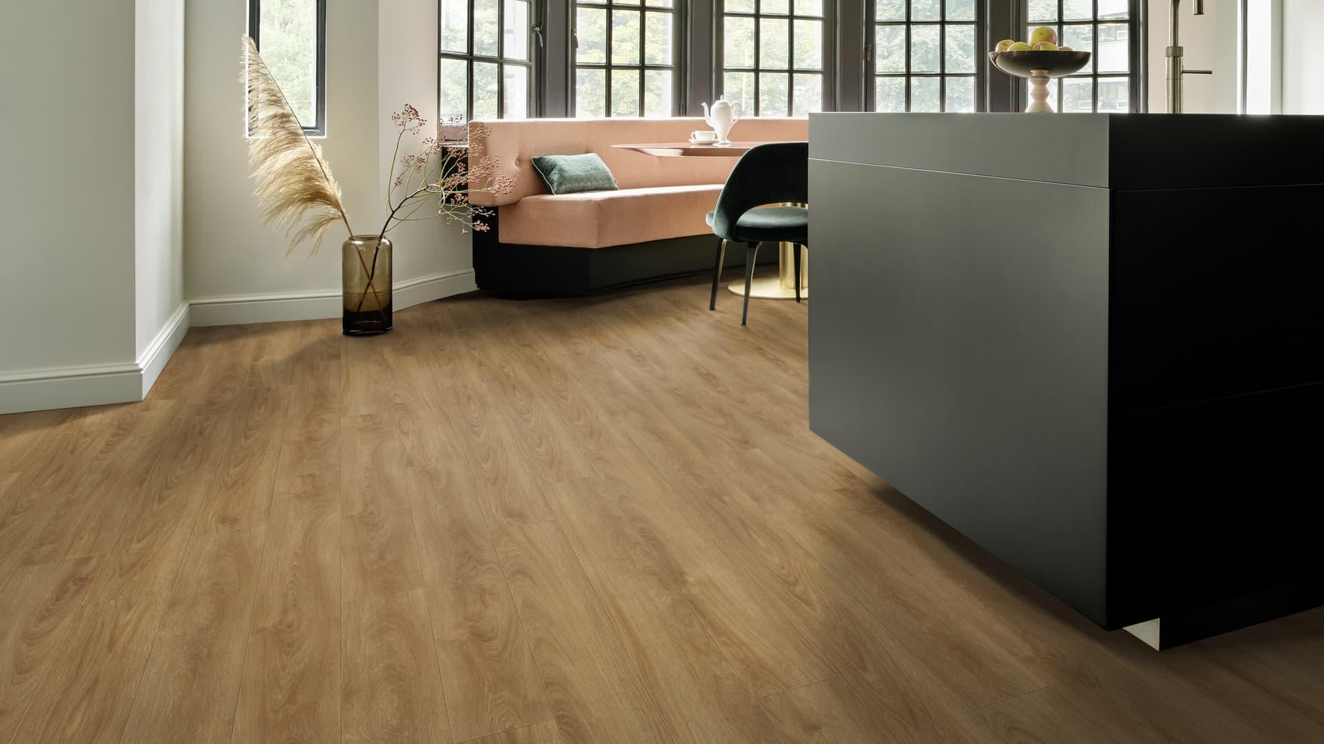 Dekory drewna obejmują eleganckie dęby, orzechy, struktury rustykalne oraz nowoczesne minimalistyczne wykończenia. Struktura embossed-in-register sprawia, że słoje i faktura drewna idealnie odwzorowują naturalny materiał. Dostępne są deski klasyczne, szerokie XL oraz formaty jodełki, co pozwala tworzyć efektowne kompozycje – od klasycznej elegancji po nordycki minimalizm.