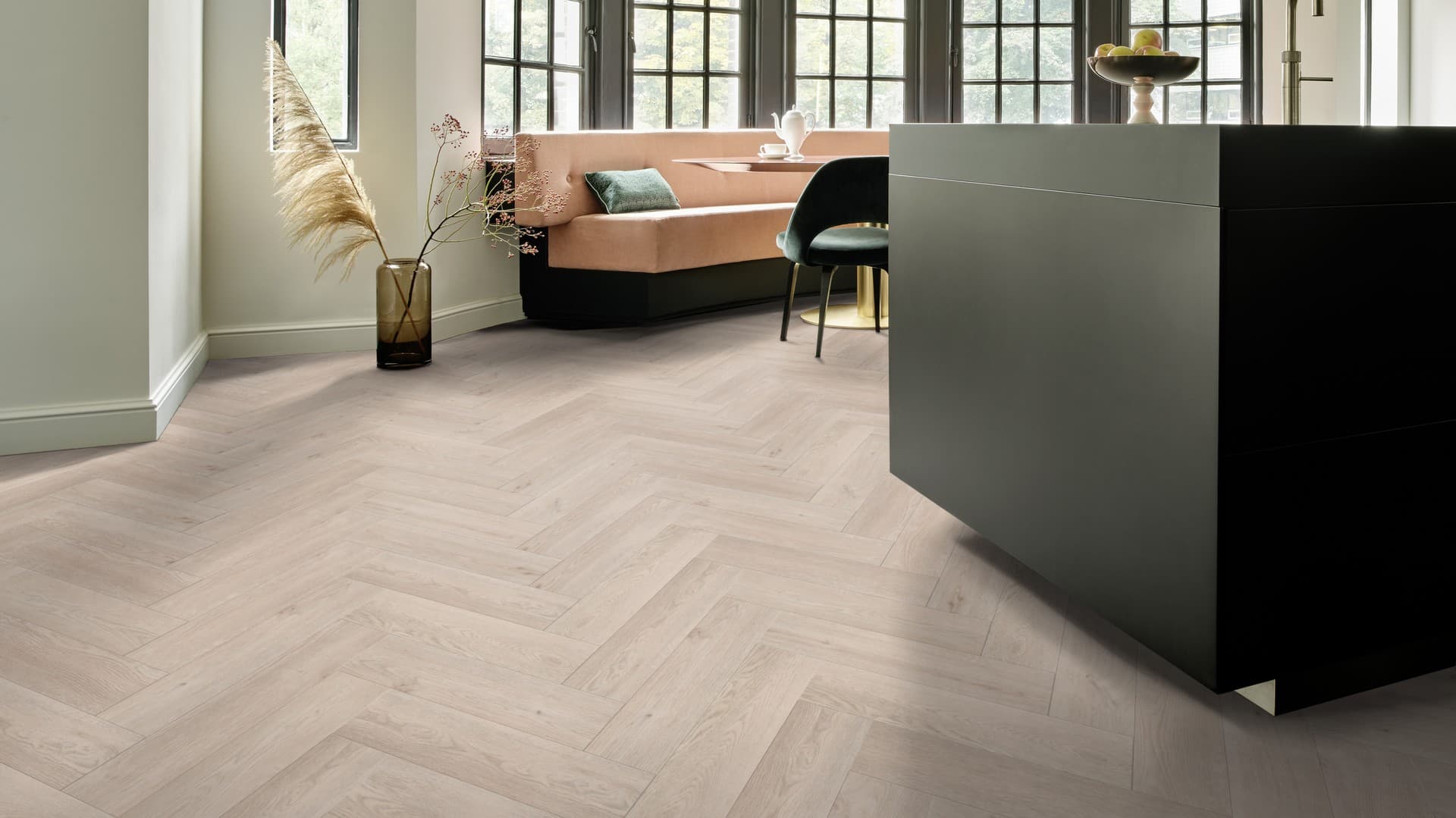 To propozycja dla osób, które cenią elegancki wygląd inspirowany klasycznym parkietem, a jednocześnie oczekują nowoczesnych właściwości użytkowych. Moduleo Roots 55 Herringbone łączy estetykę drewna z trwałością winylu, łatwością pielęgnacji i wysokim komfortem użytkowania. Doskonale sprawdzi się w salonach, sypialniach, kuchniach oraz reprezentacyjnych przestrzeniach komercyjnych, oferując podłogę, która pozostaje piękna i funkcjonalna przez wiele lat.