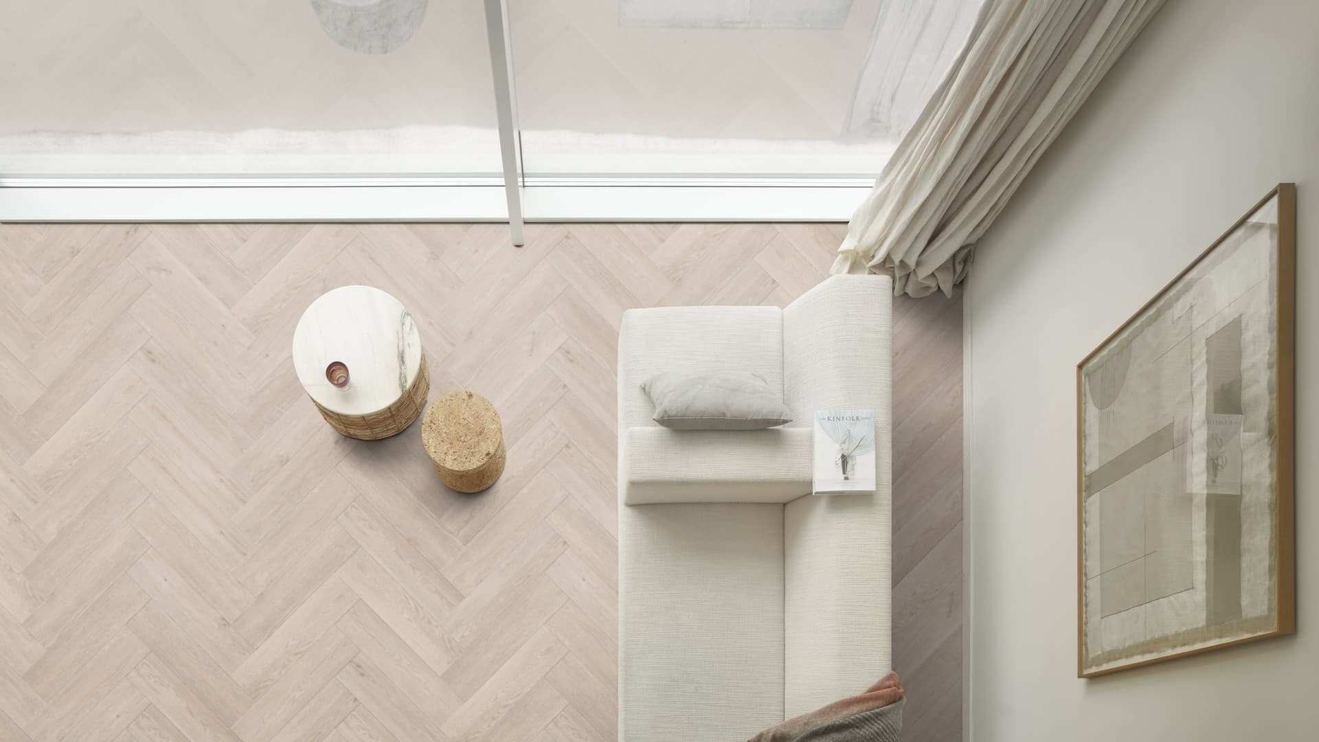 Motyw jodełkowy od lat uznawany jest za symbol ponadczasowej elegancji. W kolekcji Moduleo Roots 55 Herringbone naturalny rysunek drewna został wiernie odwzorowany dzięki realistycznym dekorom, subtelnym przejściom tonalnym oraz strukturze dopasowanej do usłojenia. Efekt wizualny łączy szlachetny wygląd tradycyjnego parkietu z nowoczesną funkcjonalnością winylu, pozwalając tworzyć wnętrza harmonijne i dopracowane w każdym detalu.