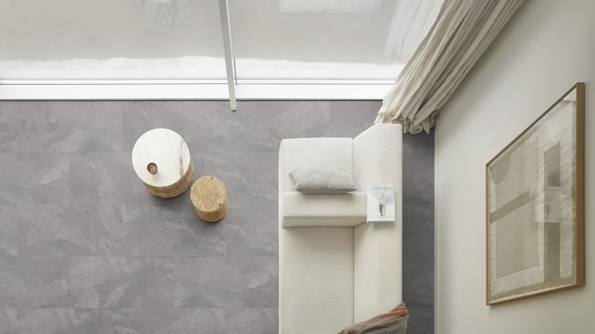 Dekory kamienia i betonu oferują subtelne żyłkowania, matowe powierzchnie i ponadczasowy styl – idealny do kuchni, aneksów, łazienek czy przestrzeni komercyjnych. Format dużych płyt pozwala osiągnąć efekt jednolitej, nowoczesnej posadzki.