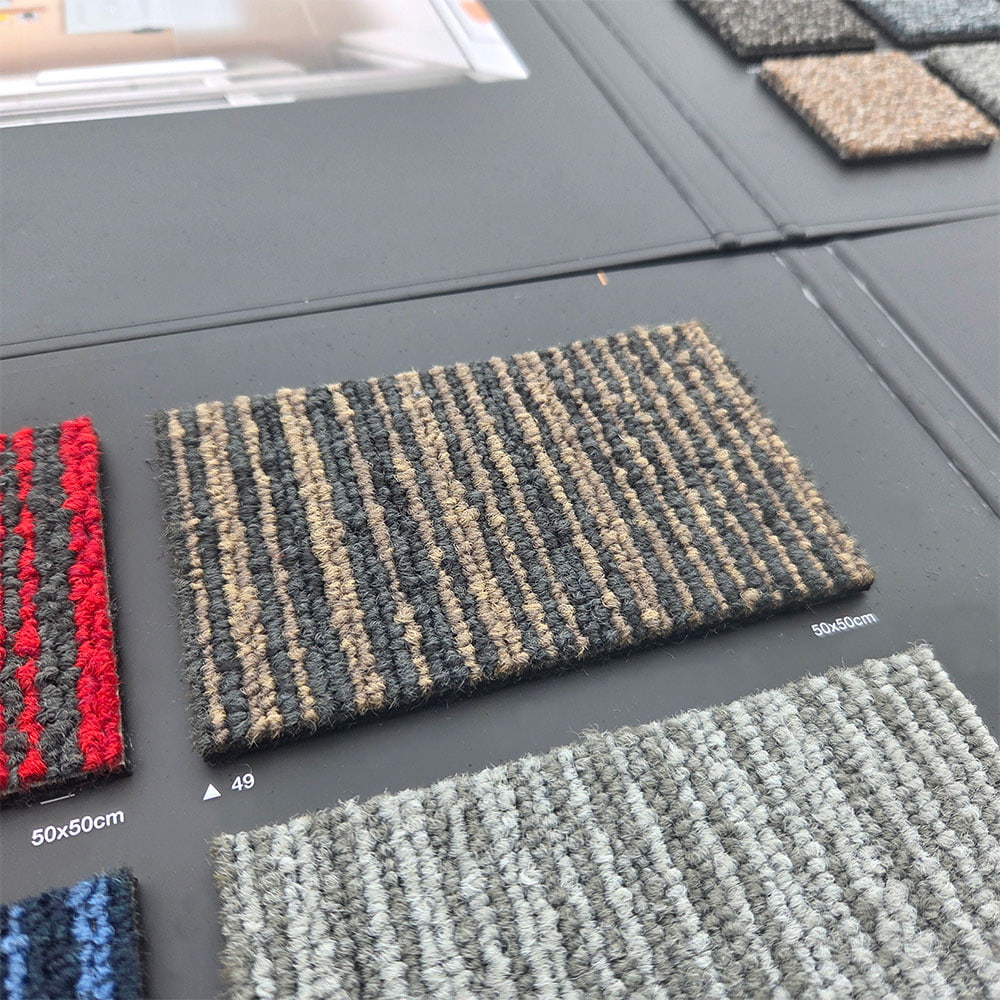 Płytki dywanowe AW Mambo to funkcjonalne rozwiązanie podłogowe o nowoczesnym, liniowym wzorze. Wykonane z barwionego w masie nylonu SDN, oferują wysoką odporność na plamy, ścieranie i odbarwienia. Format 50×50 cm ułatwia układanie i wymianę pojedynczych modułów. Kolekcja dostępna w 6 kolorach – od stonowanych szarości po intensywne czerwienie. Idealne do biur, hoteli, sklepów, a także przestrzeni mieszkalnych.