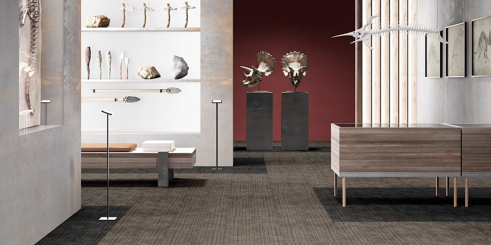 Kolekcja płytek dywanowych AW Mambo charakteryzuje się liniowym wzorem, który subtelnie wydłuża optycznie przestrzeń i dodaje wnętrzom nowoczesnego, dynamicznego charakteru. Taki układ włókien doskonale sprawdza się zarówno przy układaniu w jednym kierunku, jak i w konfiguracjach typu „checkerboard”, tworząc ciekawe efekty wizualne.