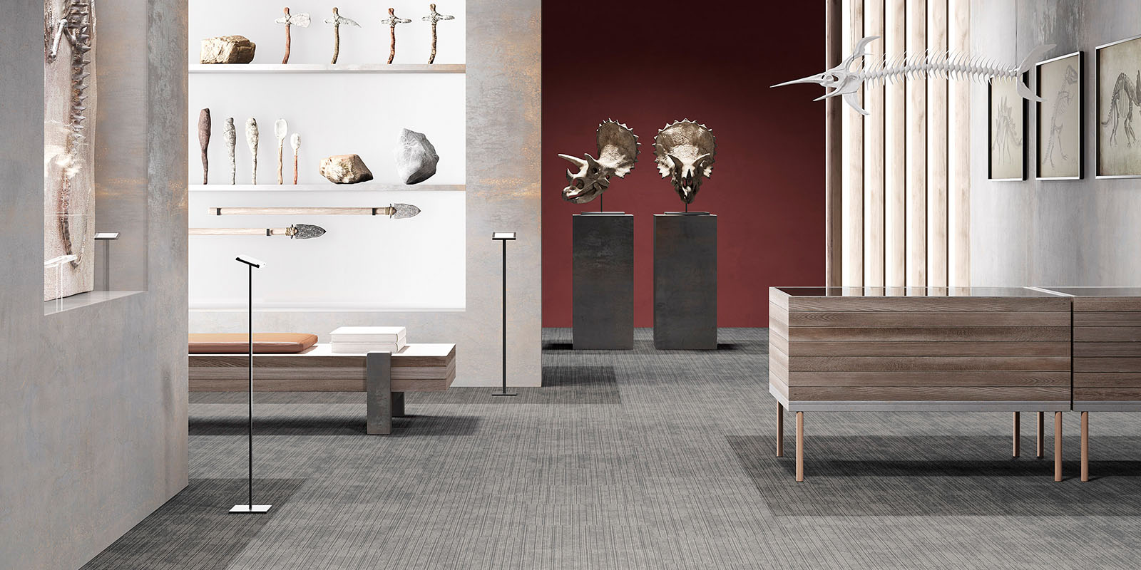 Kolekcja płytek dywanowych AW Mambo charakteryzuje się liniowym wzorem, który subtelnie wydłuża optycznie przestrzeń i dodaje wnętrzom nowoczesnego, dynamicznego charakteru. Taki układ włókien doskonale sprawdza się zarówno przy układaniu w jednym kierunku, jak i w konfiguracjach typu „checkerboard”, tworząc ciekawe efekty wizualne.